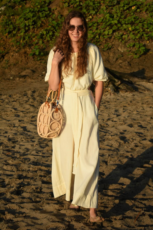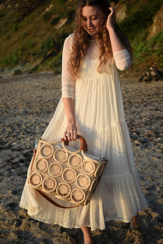 FALANA naturalna torebka boho na plażę koszyk wakacyjny naturalny pleciony